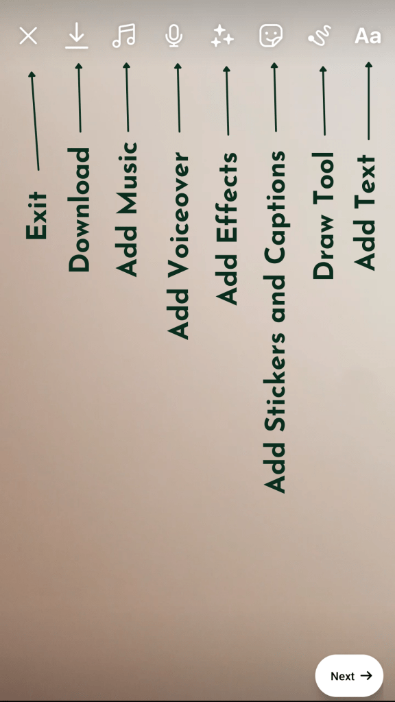 When you start creating your Reel, you’ll notice a menu down the side of the screen with several options: