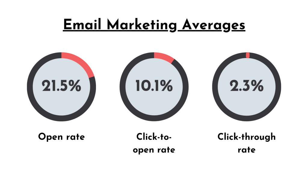 The average open rate of marketing emails across all industries is 21.5%.